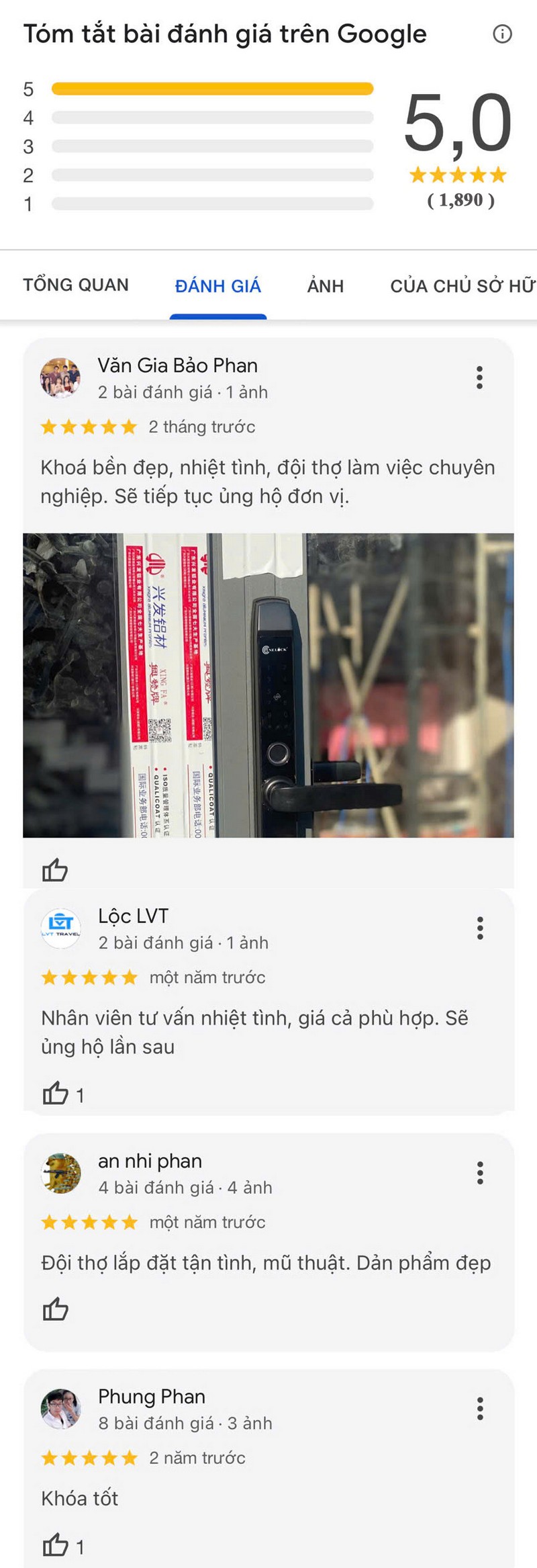 Không phải ngẫu nhiên mà hơn 1.890 sản phẩm khóa cửa thông minh Tuya đã được khách hàng mua và sử dụng chỉ riêng tại thành phố Huế. Với điểm số đánh giá 4.9 trên thanh điểm 5.0 của người dùng trực tiếp từ Google cho thấy chất lượng sản phẩm khóa cửa Tuya tốt và đáng để sở hữu.